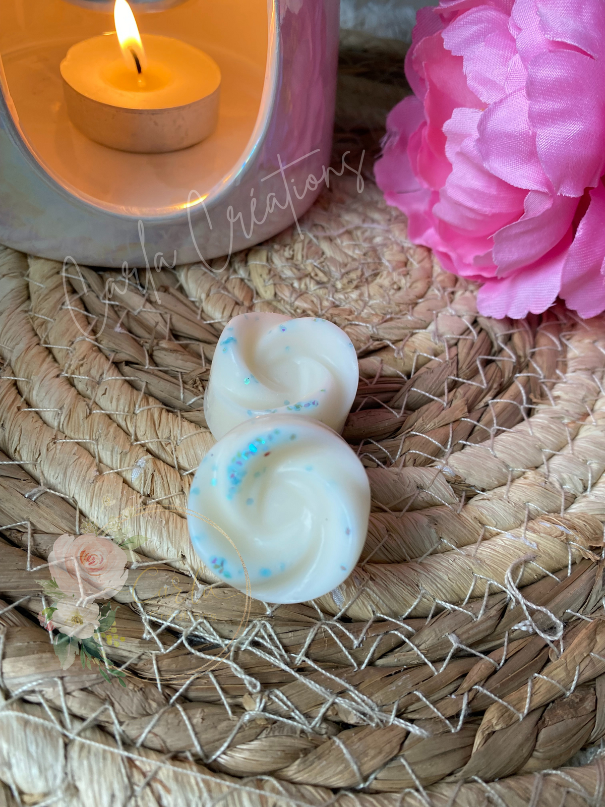 Parfume ton intérieur de manière écologique et naturelle ! Senteur : Fleur de coton Poids environ : 16gr fondant feuille Pyramide...